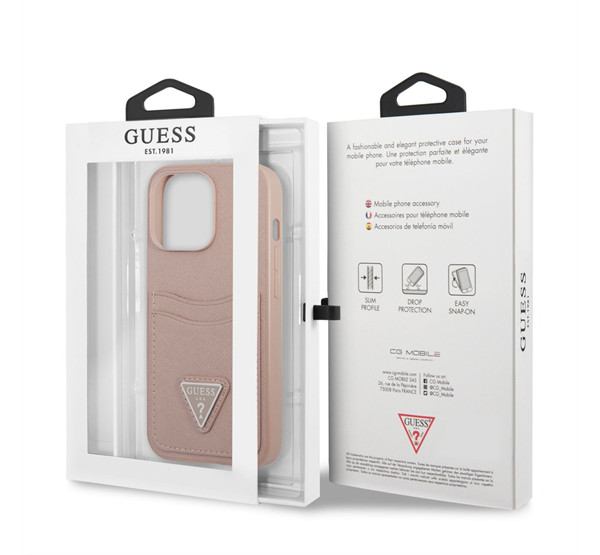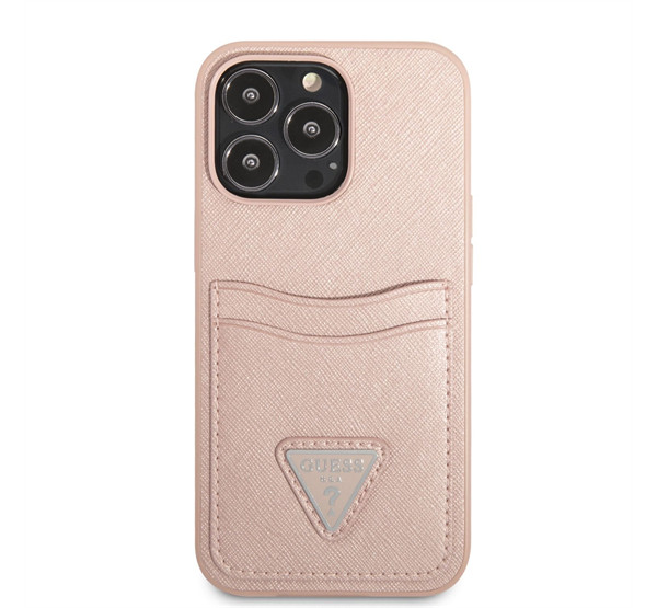 Guess Saffiano Double Card Apple iPhone 13 Pro bőr hátlap tok, rózsaszín