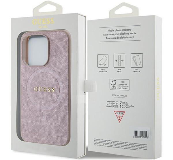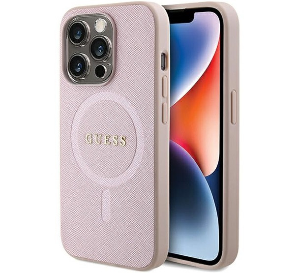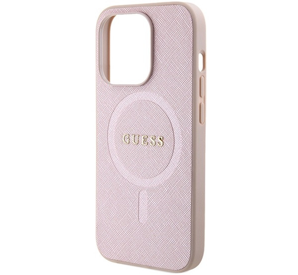 Guess Saffiano MagSafe Apple iPhone 15 Pro hátlap tok, rózsaszín