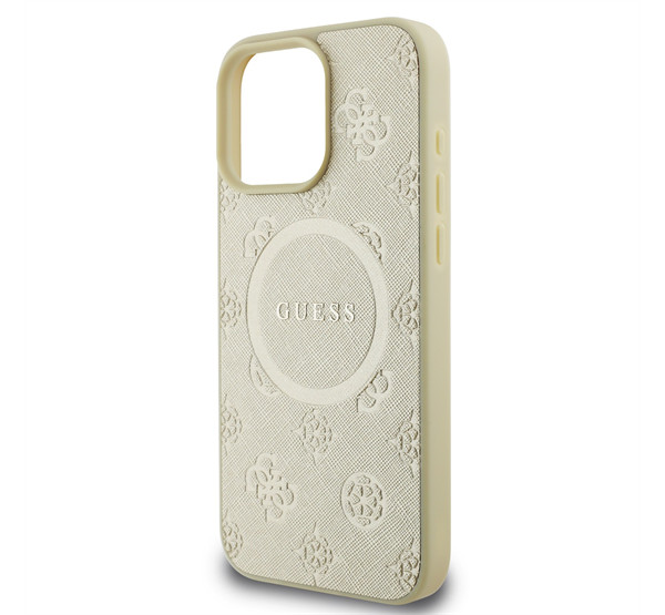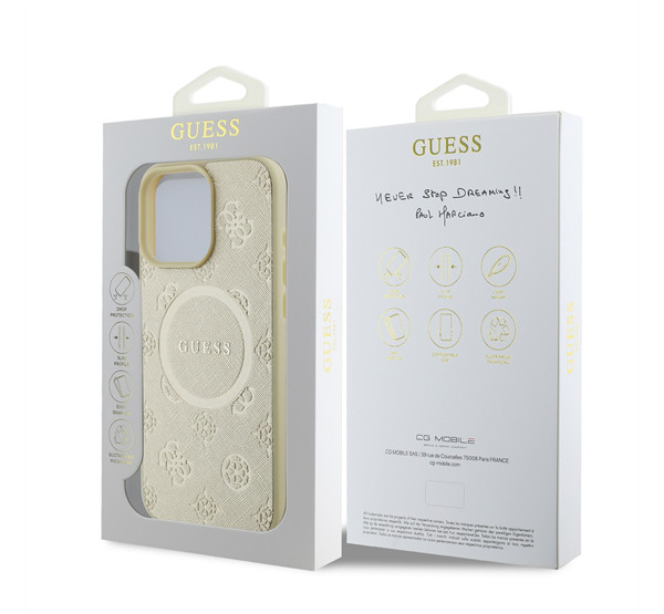 Guess Saffiano Peony Classic Logo Apple iPhone 16 Pro hátlap tok, arany GUHMP16LPSAPSMED