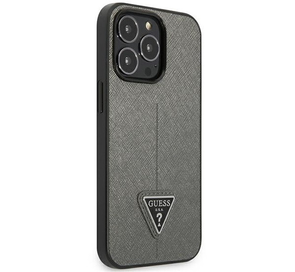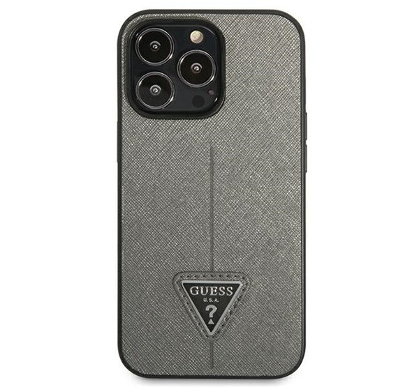 Guess SaffianoTriangle Apple iPhone 14 Pro hátlap tok, ezüst