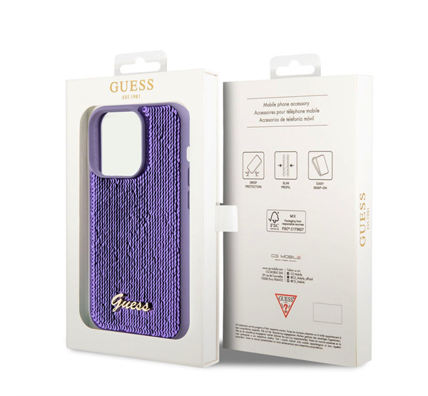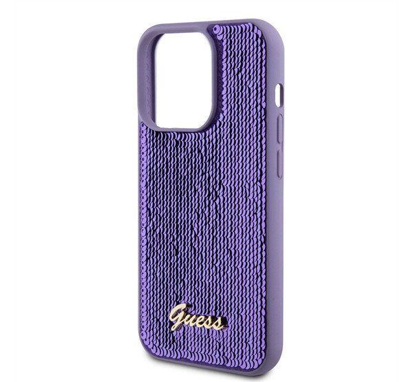 Guess Sequin Script Logo iPhone 14 Pro Max tok, lila