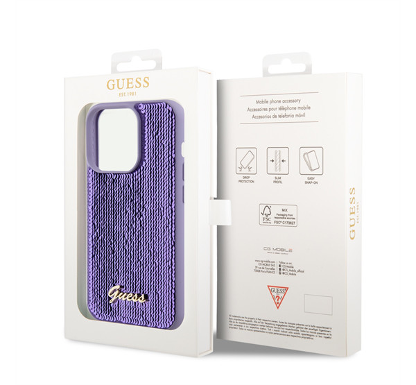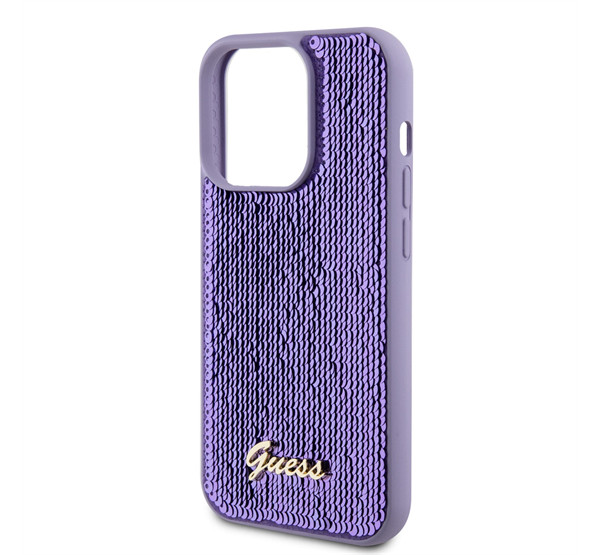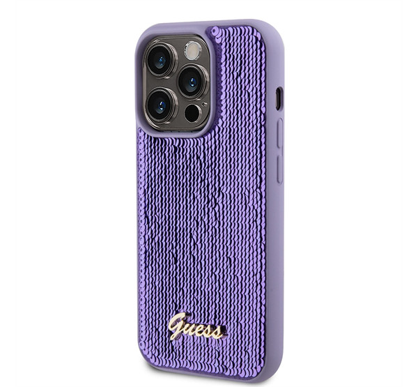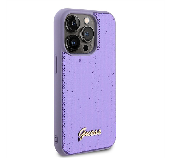 Guess Sequin Script Logo iPhone 14 Pro tok, lila