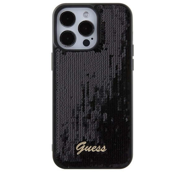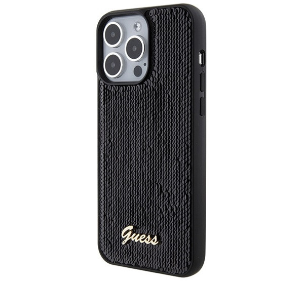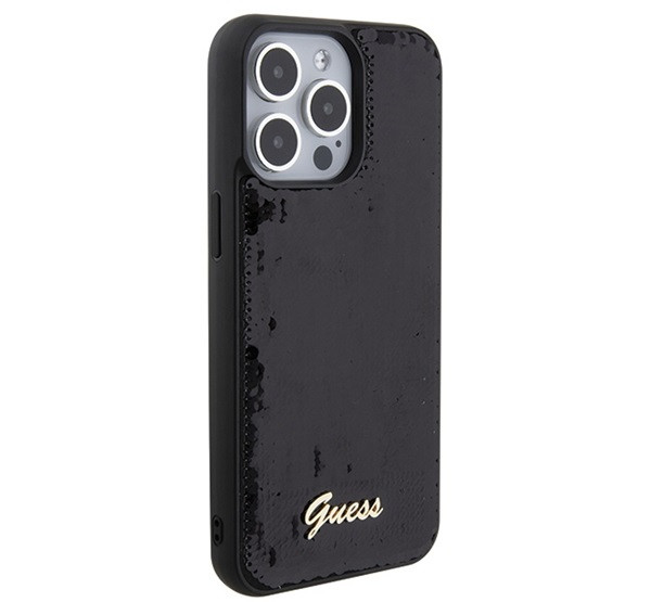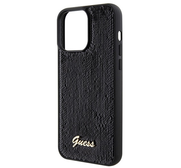 Guess Sequin Script Metal Apple iPhone 15 Pro Max hátlap tok, fekete