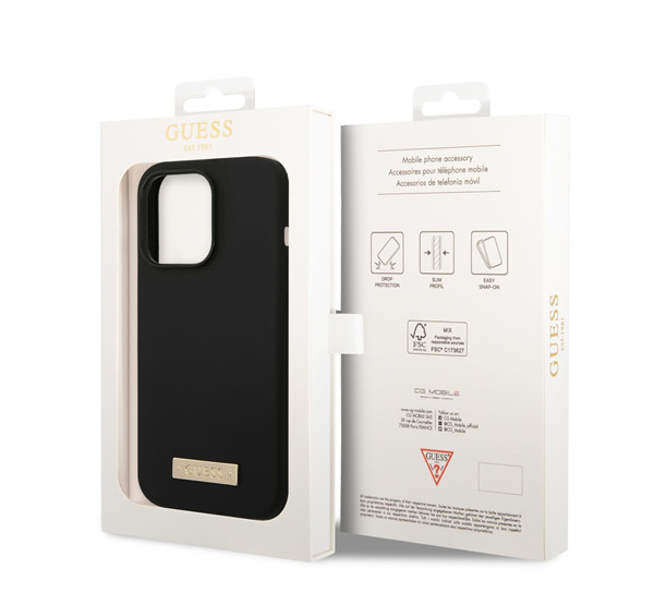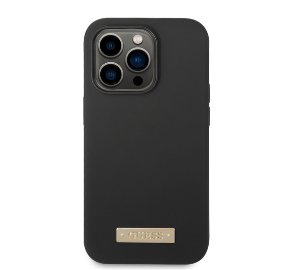 Guess Silicone Metal Logo MagSafe Apple iPhone 14 Pro Max hátlap tok, fekete