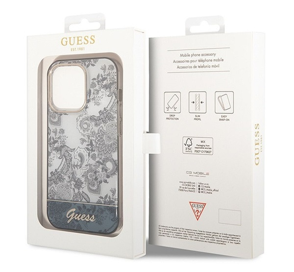 Guess Toile De Jouy Apple iPhone 14 Pro hátlap tok, szürke