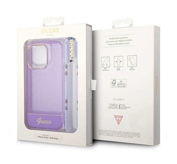 Guess Translucent Pearl Strap Apple iPhone 14 Pro Max hátlap tok, lila