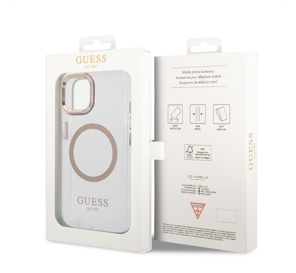 Guess Transparent MagSafe Apple iPhone 14 Plus hátlap tok, arany