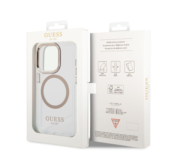 Guess Transparent MagSafe Apple iPhone 14 Pro Max hátlap tok, arany
