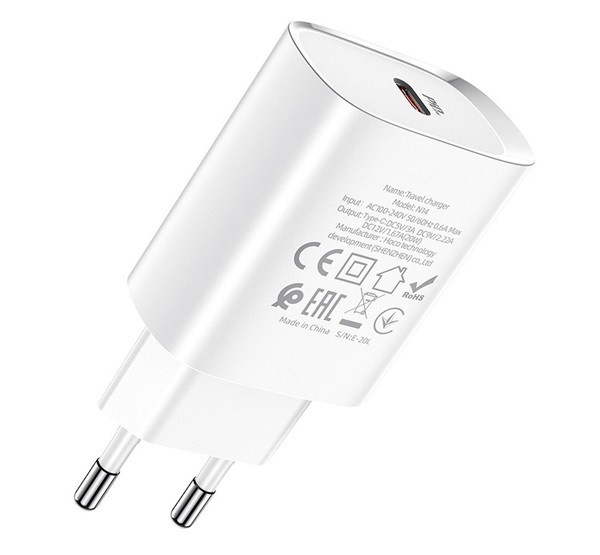 Hoco N14 hálózati tőltő adapter USB-C, PD, 20W, fehér
