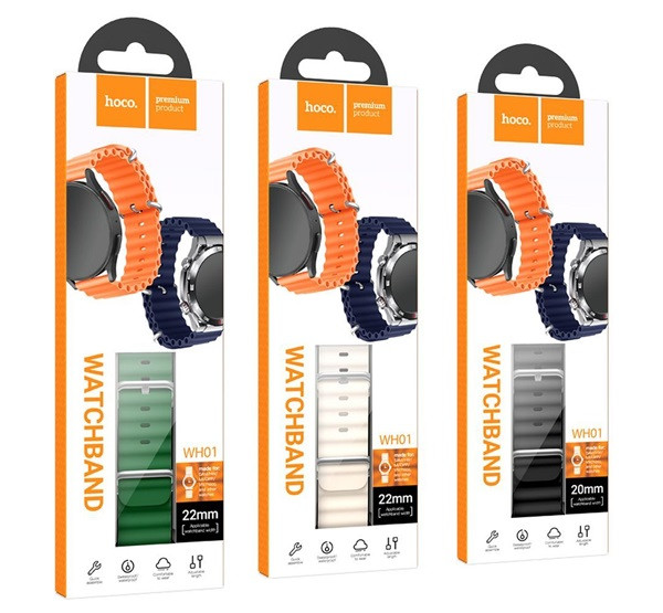 Hoco WH01 univerzális szilikon szíj, 22mm, narancssárga