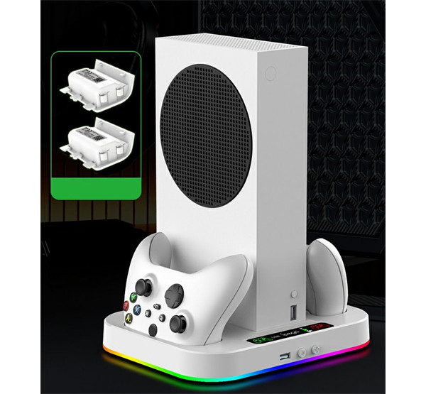 iPega XBS012S Hűtőállvány Xbox S sorozathoz, kettős vezérlőtöltéssel és RGB háttérvilágítással és 2db 1400mAh akkumulátorokkal.