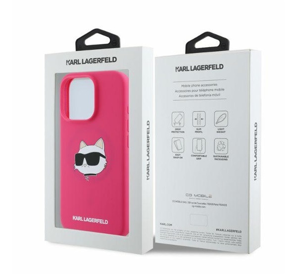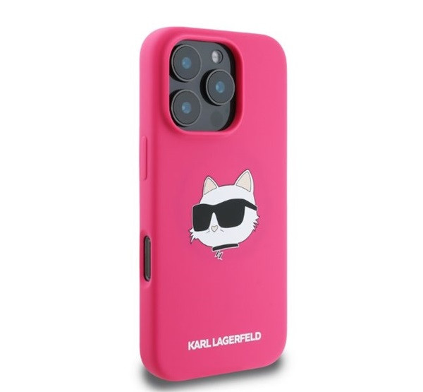 Karl Lagerfeld Silicone Choupette Head Print Apple iPhone 16 Pro Max Magsafe kompatibilis hátlap tok, rózsaszín