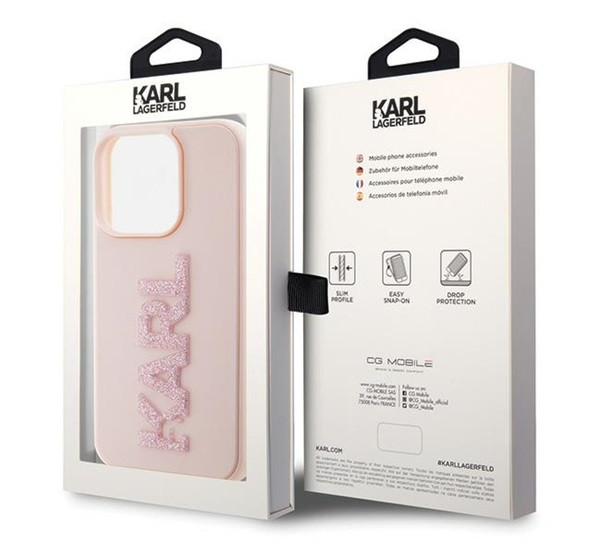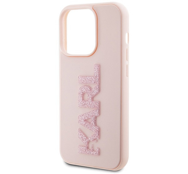 Karl Lagerfeld 3D Rubber Glitter Logo Apple iPhone 15 Pro hátlap tok, rózsaszín