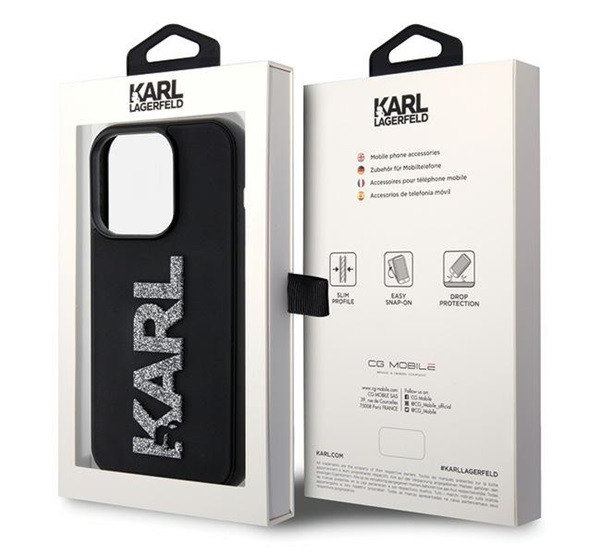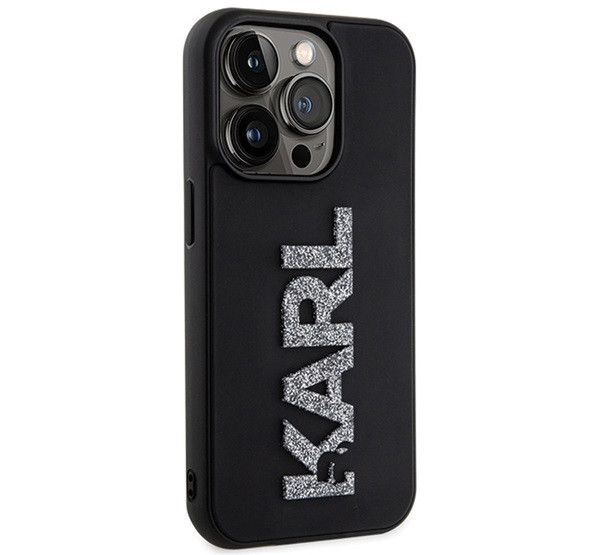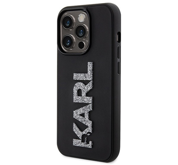 Karl Lagerfeld 3D Rubber Glitter Logo Apple iPhone 15 Pro Max hátlap tok, fekete