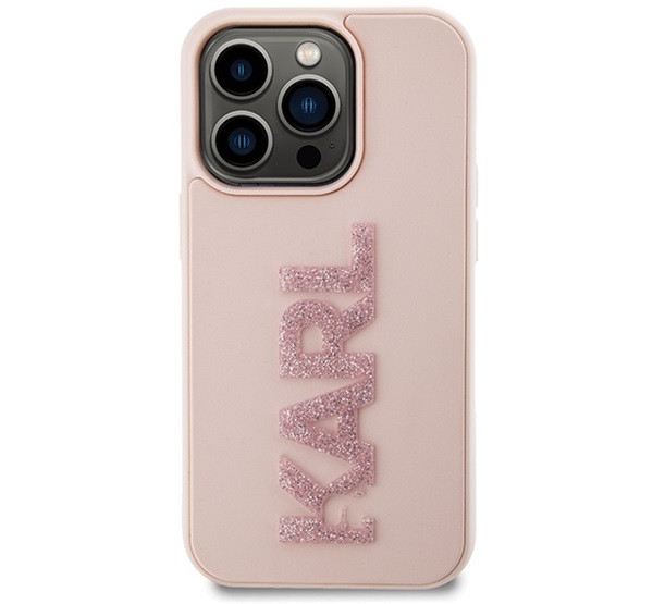 Karl Lagerfeld 3D Rubber Glitter Logo Apple iPhone 15 Pro Max hátlap tok, rózsaszín