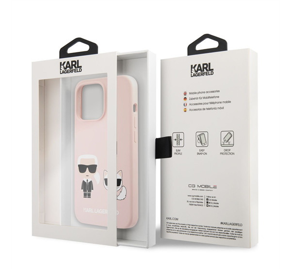 Karl Lagerfeld and Choupette Liquid szilikon hátlap tok Apple iPhone 13 Pro, rózsaszín