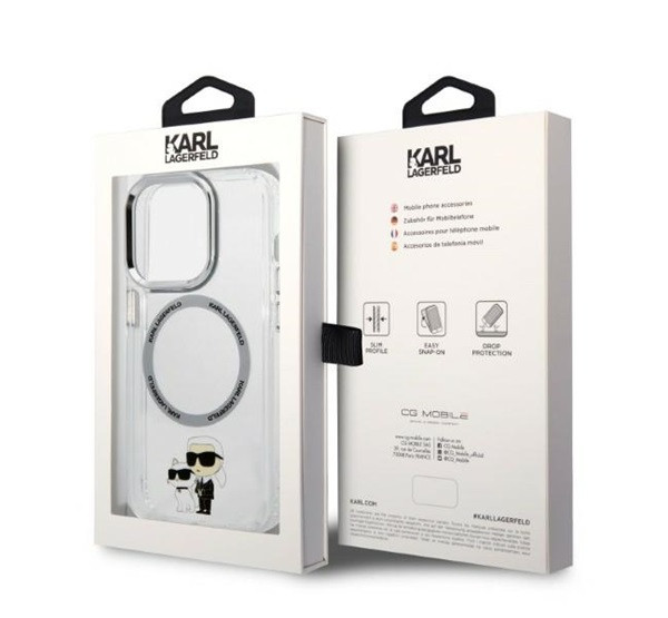 A Karl Lagerfeld Karl and Choupette MagSafe hátlap tok elegáns és stílusos védelmet nyújt a telefonodnak. Ez a prémium tok kemény és rugalmas műanyagból készült, így hatékonyan védi a készüléket a karcolásoktól, ütődésektől és szennyeződésektől. A MagSafe technológia támogatása lehetővé teszi a vezeték nélküli töltést és más MagSafe kiegészítők használatát anélkül, hogy le kellene venni a tokot. Emellett a tok pontos kivágásokkal rendelkezik, így minden gomb és csatlakozó könnyen elérhető marad.