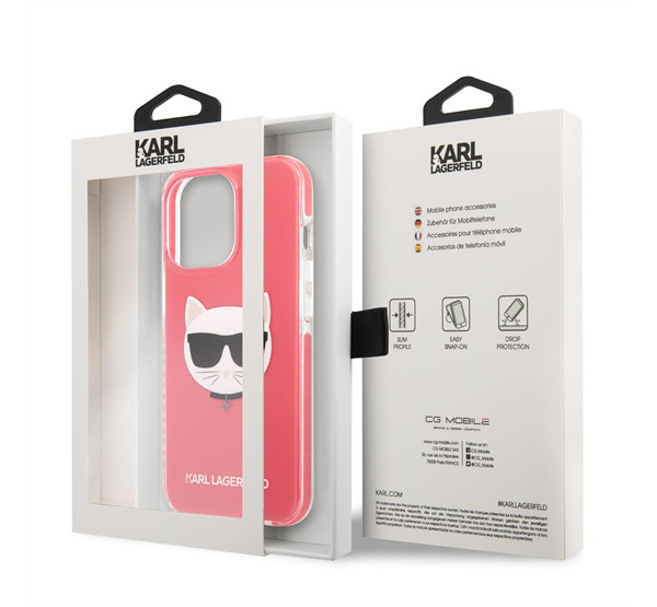 Karl Lagerfeld Choupette Head TPE szilikon hátlap tok Apple iPhone 13 Pro, rózsaszín