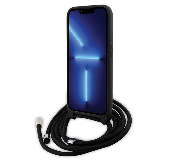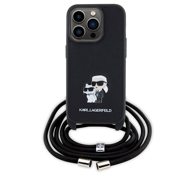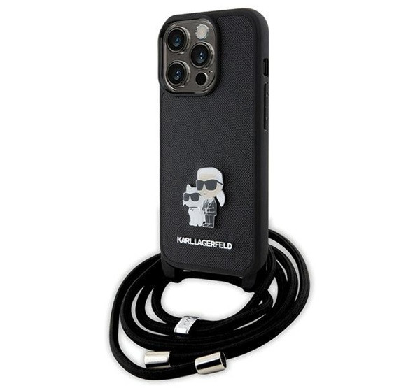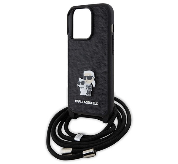Karl Lagerfeld Crossbody Saffiano Metal Pin Karl & Choupette Apple iPhone 15 Pro hátlap tok, fekete