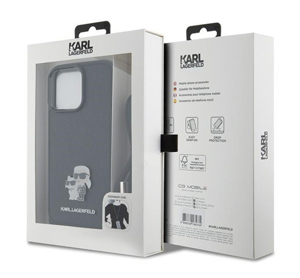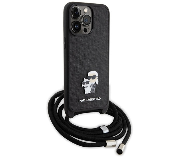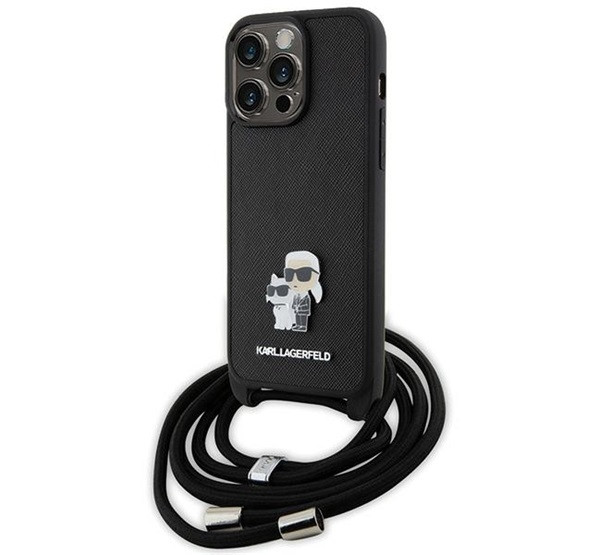Karl Lagerfeld Crossbody Saffiano Metal Pin Karl Apple iPhone 15 Pro Max hátlap tok, fekete