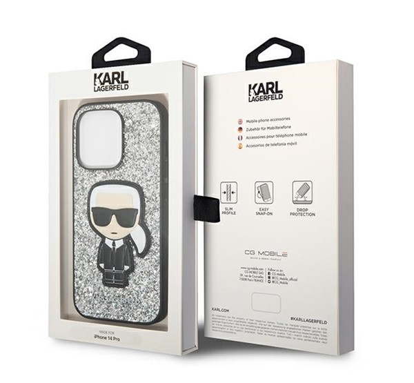 Karl Lagerfeld Glitter Flakes Ikonik Apple iPhone 14 Pro Max hátlap tok, ezüst