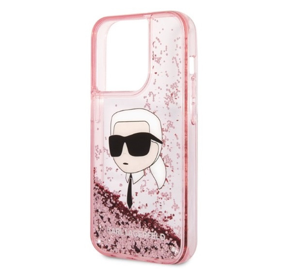 Karl Lagerfeld Glitter Karl Head Apple iPhone 14 Pro hátlap tok, rózsaszín