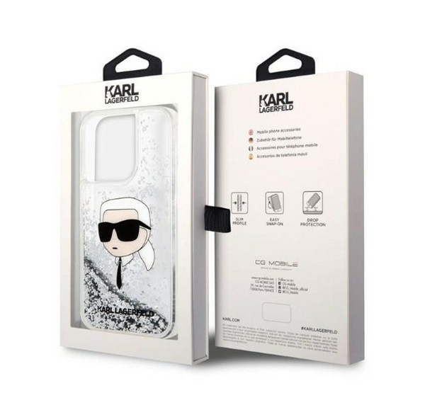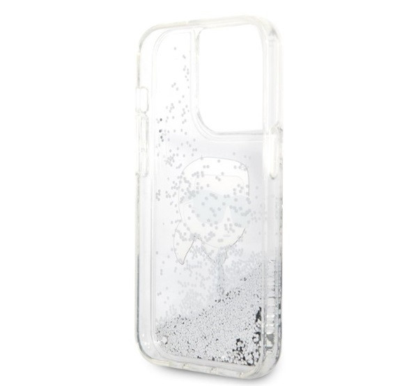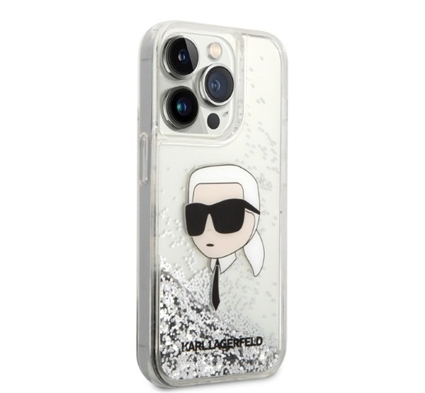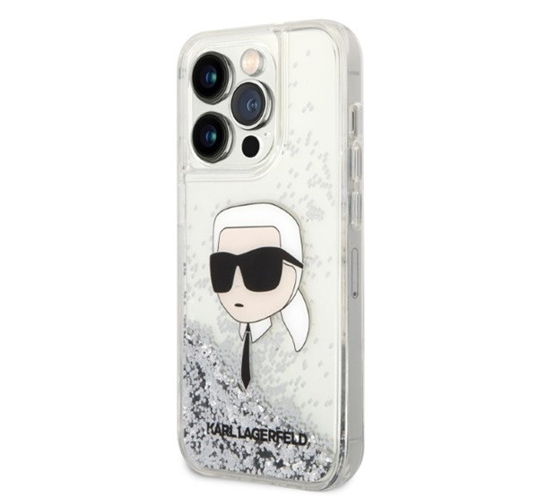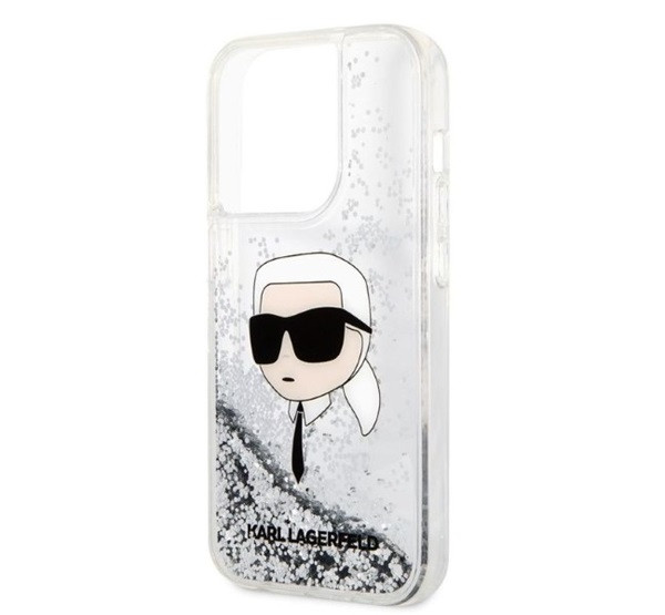 Karl Lagerfeld Glitter Karl Head Apple iPhone 14 Pro Max hátlap tok, ezüst