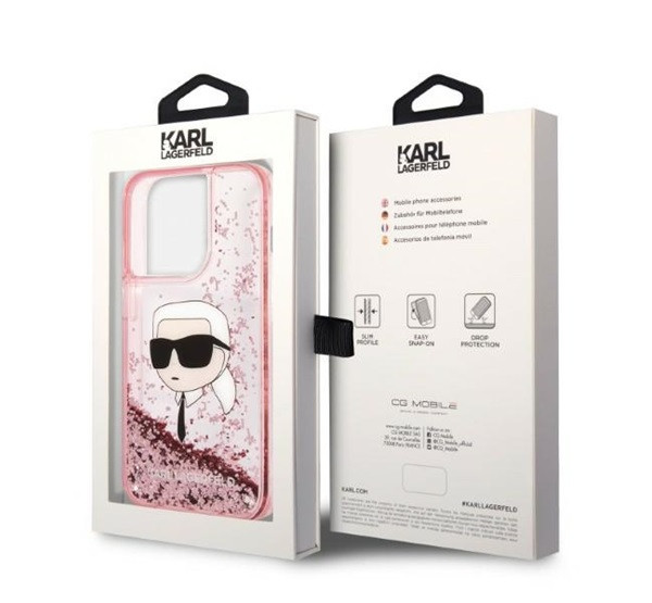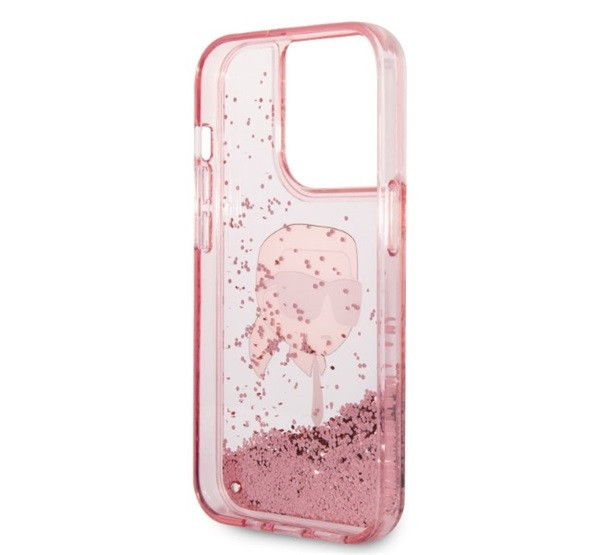 Karl Lagerfeld Glitter Karl Head Apple iPhone 14 Pro Max hátlap tok, rózsaszín
