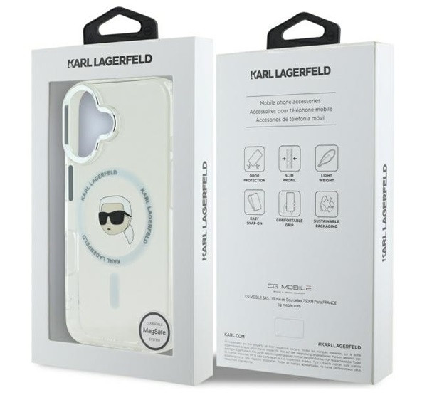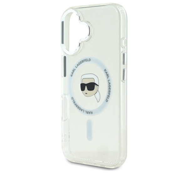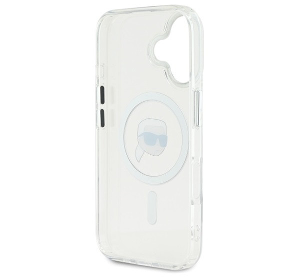 Karl Lagerfeld IML Metal Karl Head iPhone 16 MagSafe kemény hátlap tok, fehér KLHMP16SHLSKIH