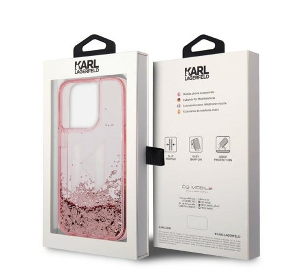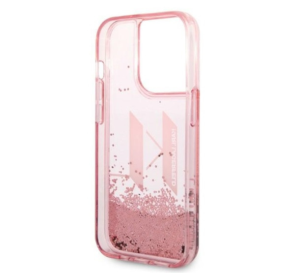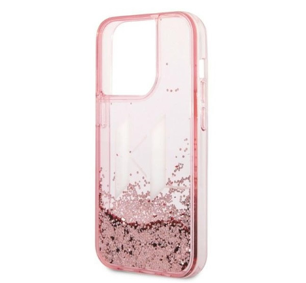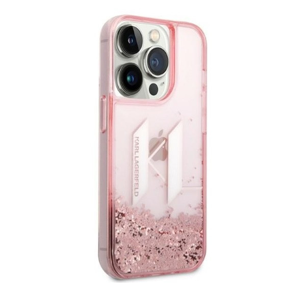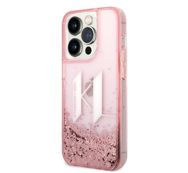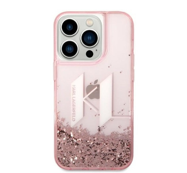 Karl Lagerfeld Liquid Glitter Big KL Apple iPhone 14 Pro hátlap tok, rózsaszín