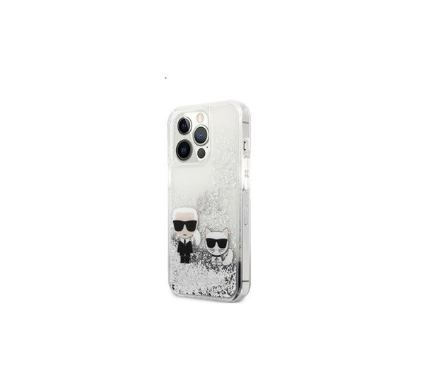 Karl Lagerfeld Liquid Glitter Karl and Choupette hátlap tok Apple iPhone 13 Pro Max, ezüst