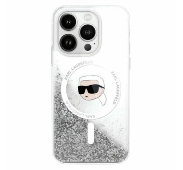 Karl Lagerfeld Liquid Glitter Karl Head iPhone 16 Pro Magsafe hátlap tok, átlátszó KLHMP16LLGKISGH