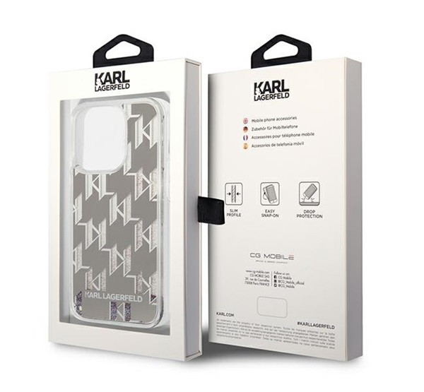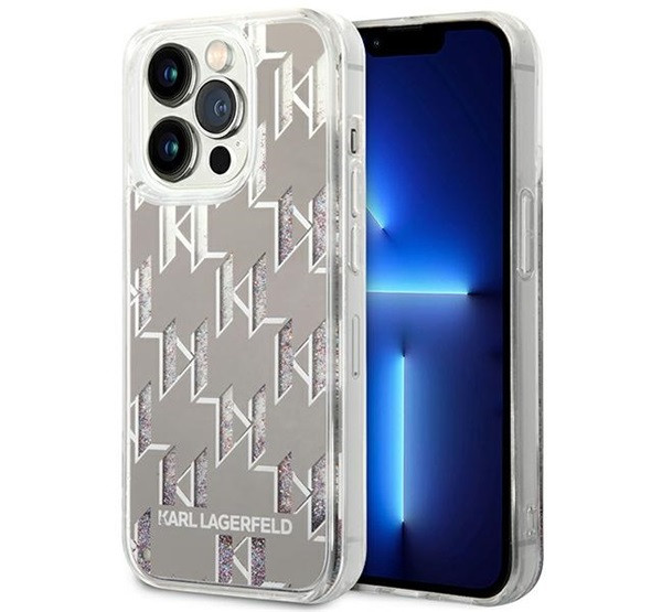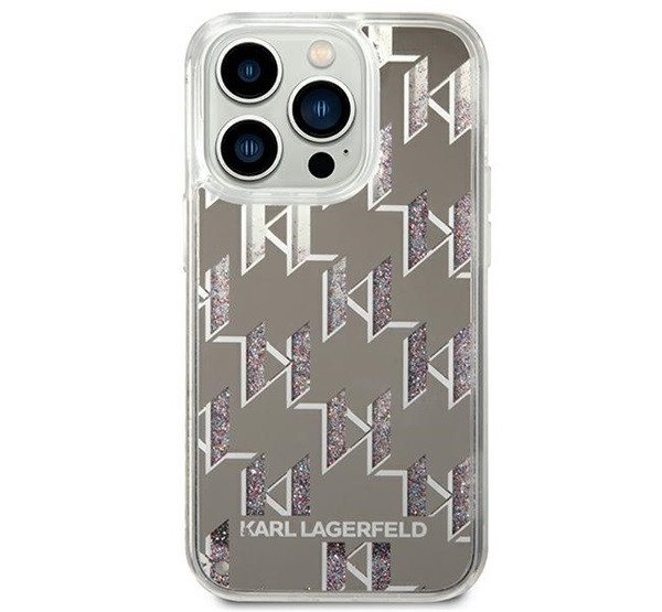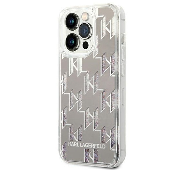 Karl Lagerfeld Liquid Glitter Monogram Apple iPhone 14 Pro Max hátlap tok, ezüst