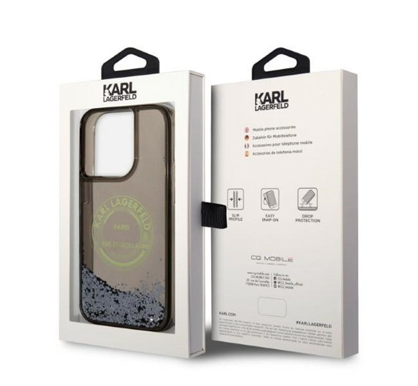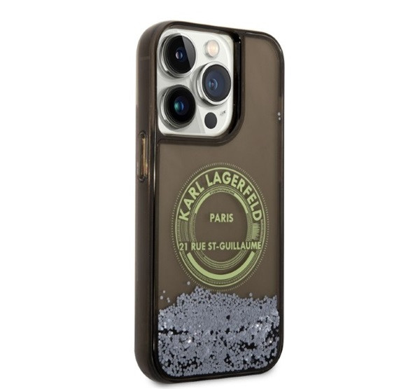 Karl Lagerfeld Liquid Glitter RSG Apple iPhone 14 Pro hátlap tok, fekete