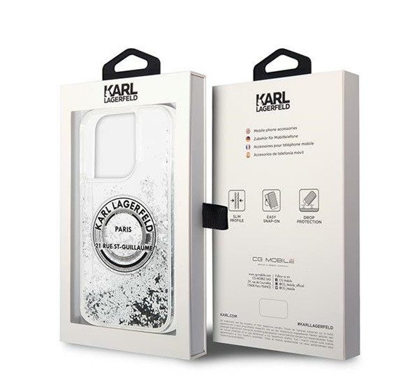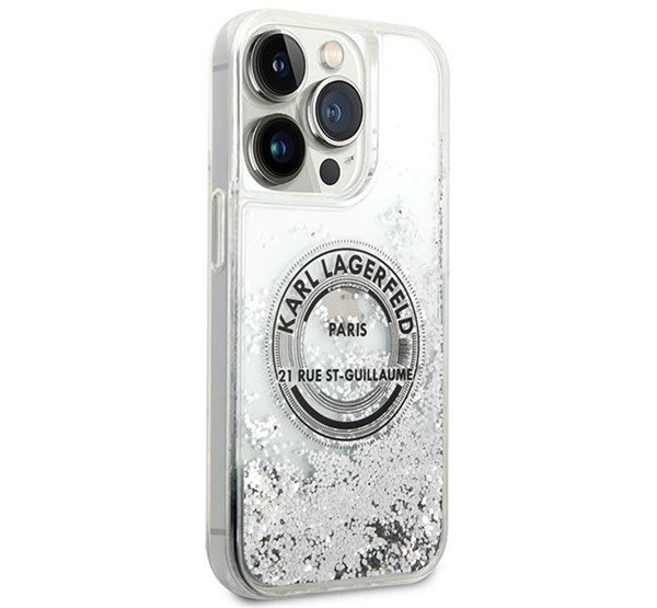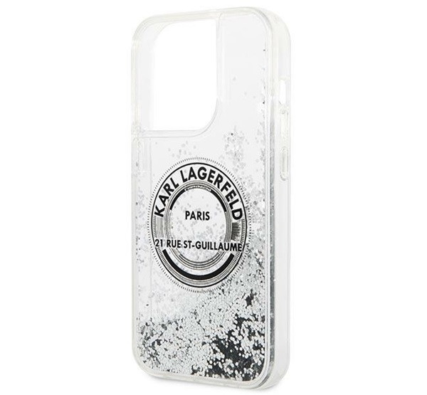 Karl Lagerfeld Liquid Glitter RSG Apple iPhone 14 Pro Max hátlap tok, ezüst