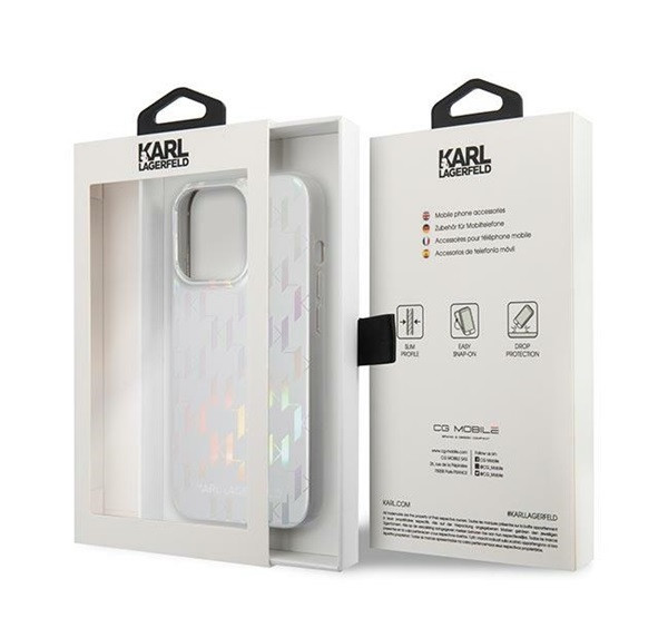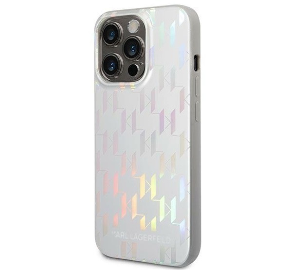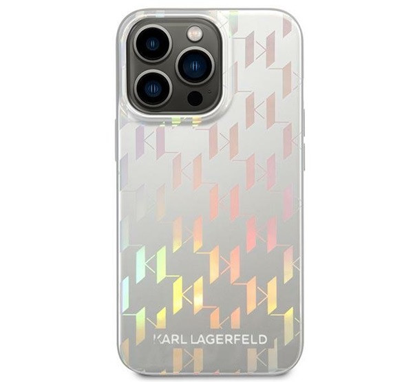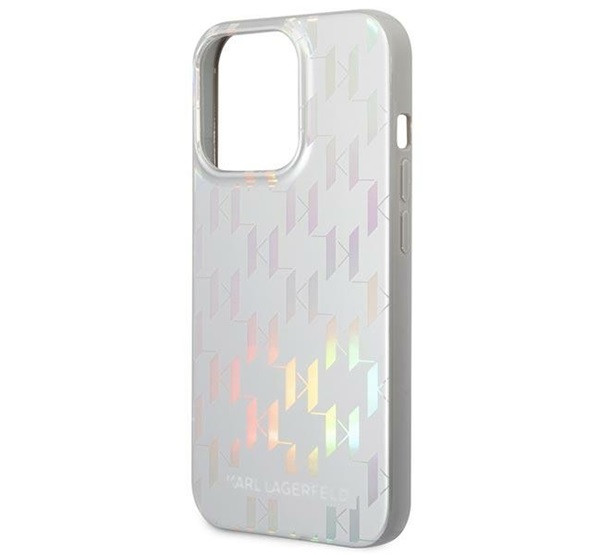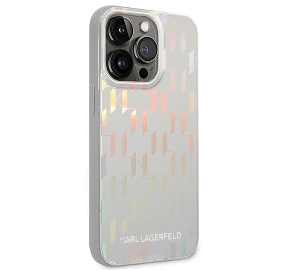 Karl Lagerfeld Monogram Iridescent Apple iPhone 14 Pro hátlap tok, ezüst