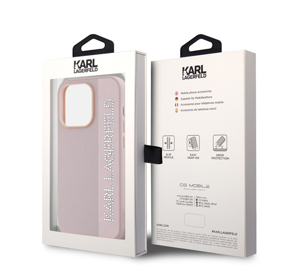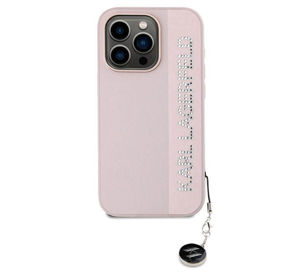 Karl Lagerfeld PU Saffiano Rhinestone Charm Apple iPhone 15 Pro hátlap tok, rózsaszín