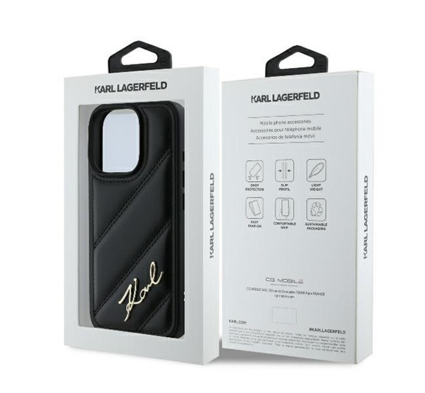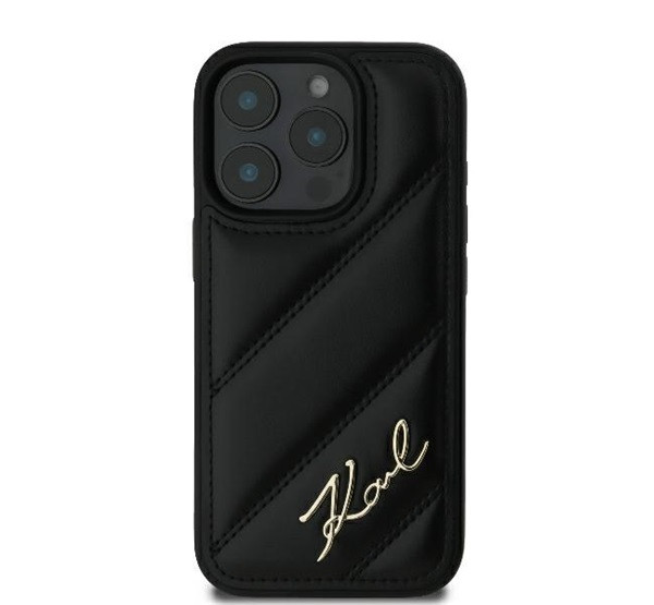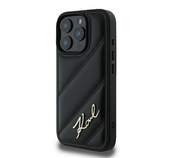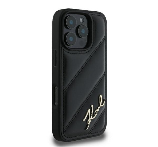 Karl Lagerfeld Quilted Signature Apple iPhone 16 Pro hátlap tok, fekete KLHCP16LPQDSMGK