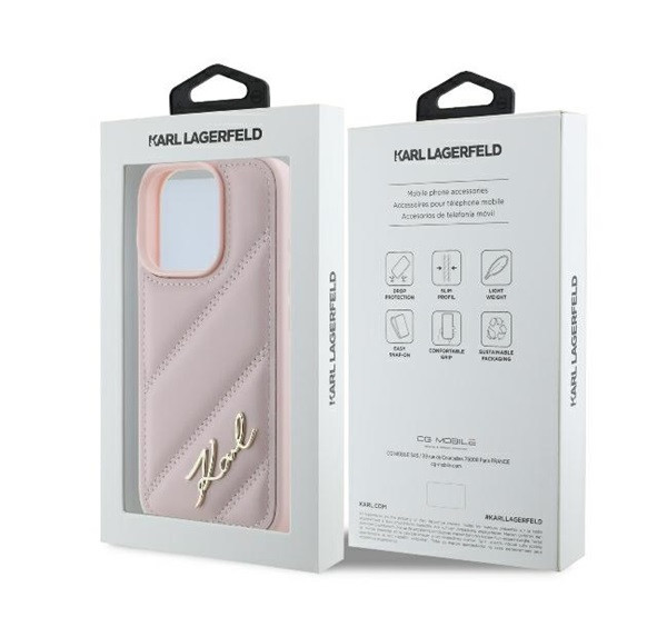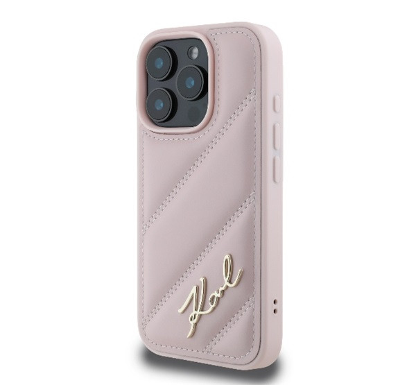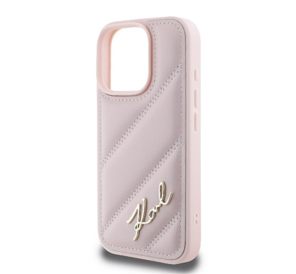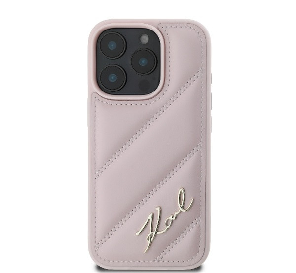 Karl Lagerfeld Quilted Signature Apple iPhone 16 Pro hátlap tok, rózsaszín KLHCP16LPQDSMGP