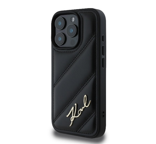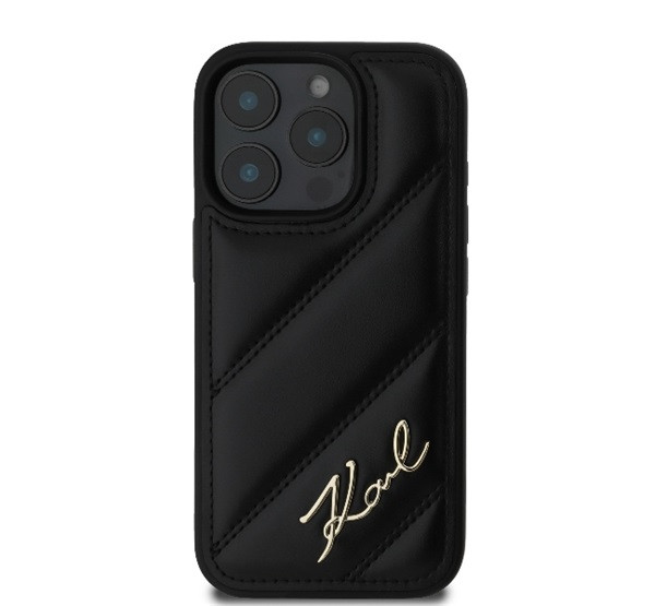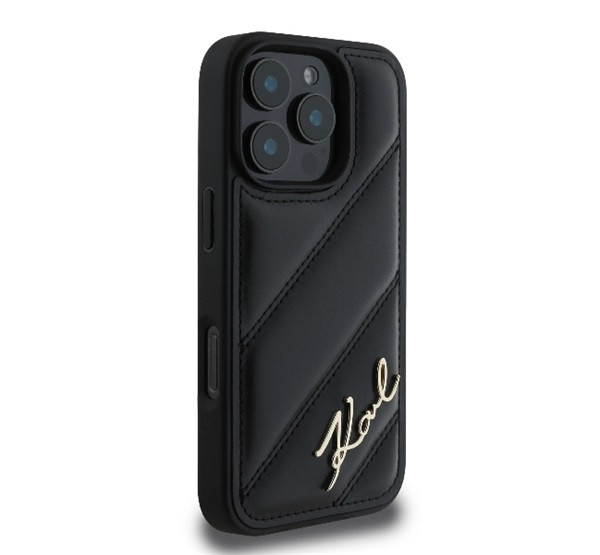 Karl Lagerfeld Quilted Signature Apple iPhone 16 Pro Max hátlap tok, fekete KLHCP16XPQDSMGK