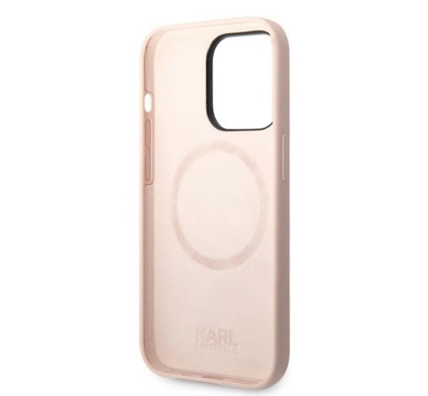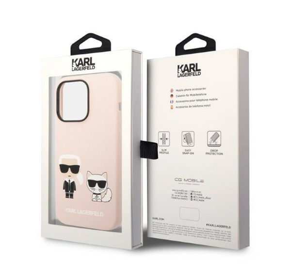 Karl Lagerfeld Silicone Karl & Choupette Apple iPhone 14 Pro Magsafe hátlap tok, halvány rózsaszín