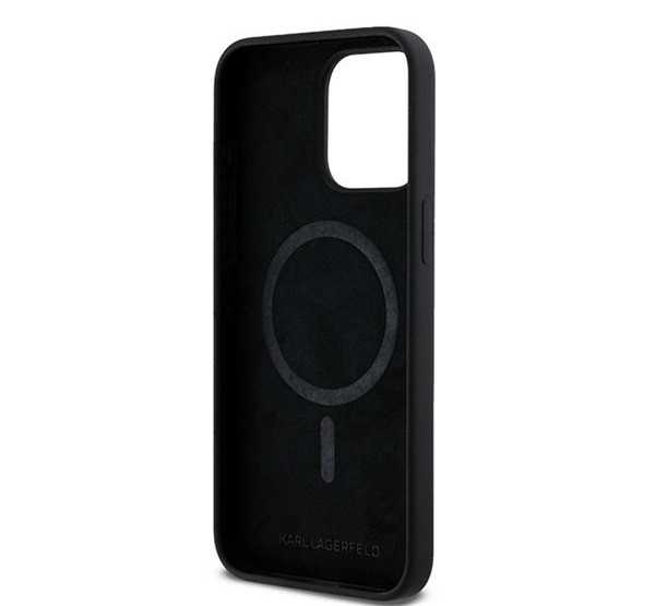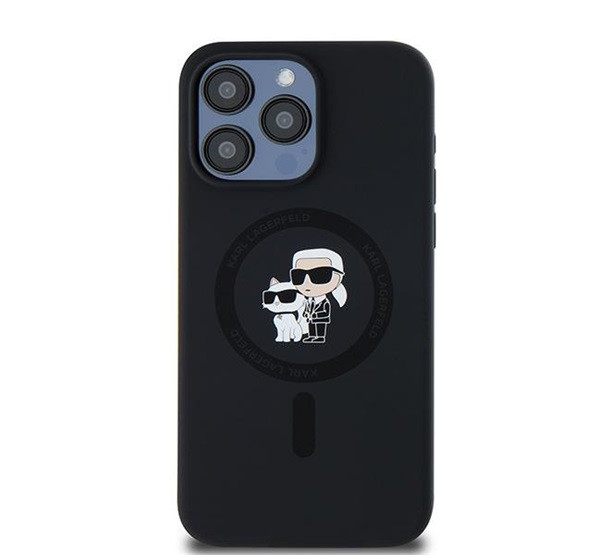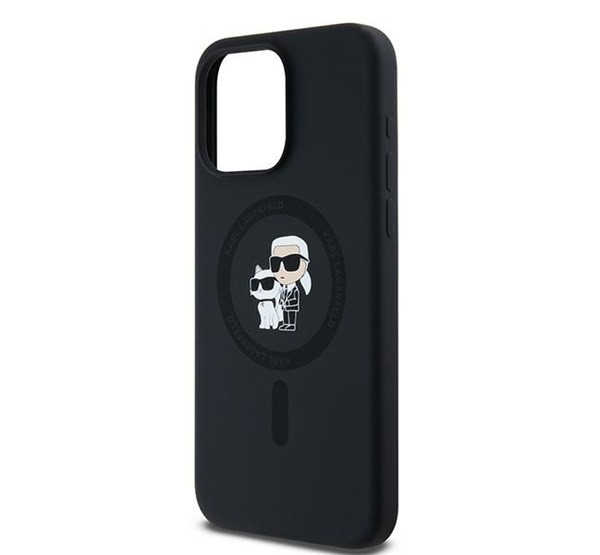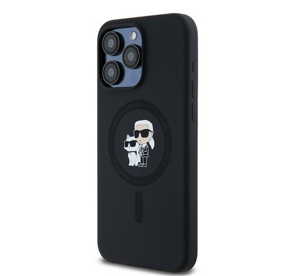 Karl Lagerfeld Silicone Karl & Choupette Ring Apple iPhone 15 Pro Max MagSafe kompatibilis tok, fekete KLHMP15XSCMKCRHK