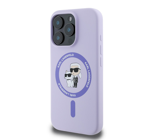 Karl Lagerfeld Silicone KC Heads Ring Apple iPhone 16 Pro hátlap tok, lila KLHMP16LSCMKCRHU