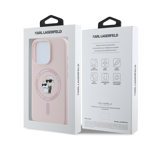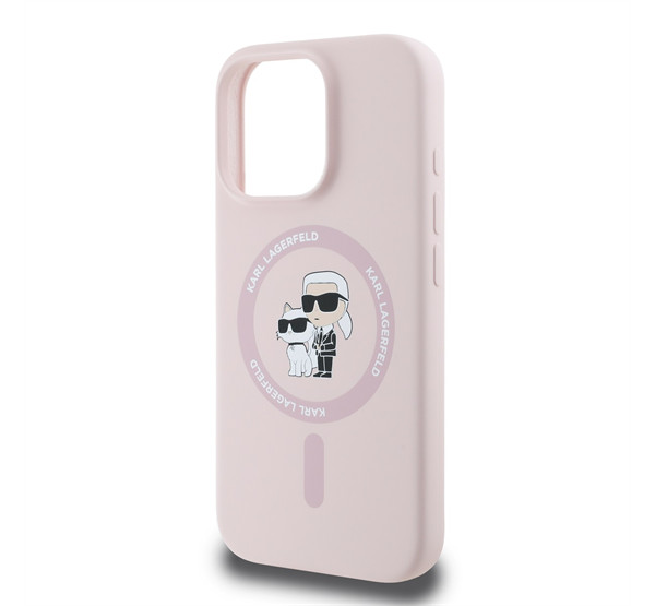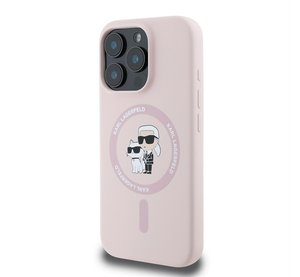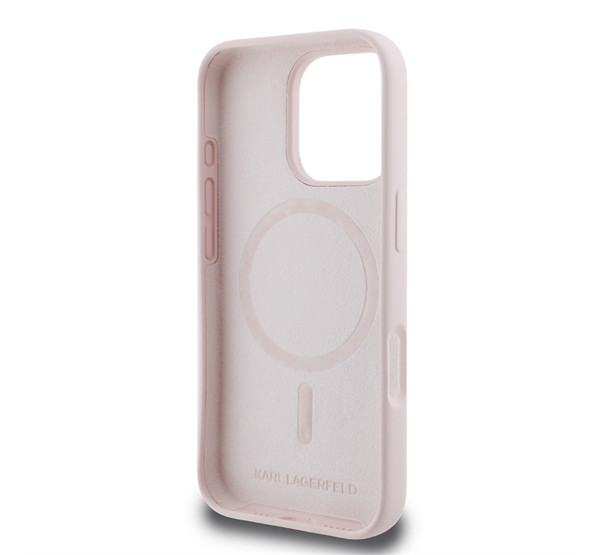 Karl Lagerfeld Silicone KC Heads Ring Apple iPhone 16 Pro Max hátlap tok, rózsaszín KLHMP16XSCMKCRHP