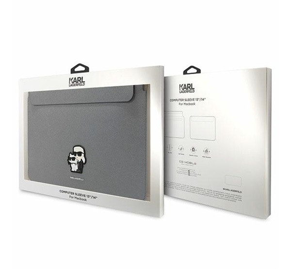 A Karl Lagerfeld Sleeve Saffiano Karl & Choupette 14" laptop tok elegáns és tartós védelmet nyújt a laptopodnak. Az ezüst színű Saffiano anyag prémium minőségű, ellenáll a karcolásoknak és ütődéseknek. Az egyedi Karl & Choupette dizájn különleges megjelenést biztosít. A belső bélés puha anyagból készült, hogy megóvja a laptopot a sérülésektől. Tökéletes választás, ha stílusos és funkcionális védelmet keresel.