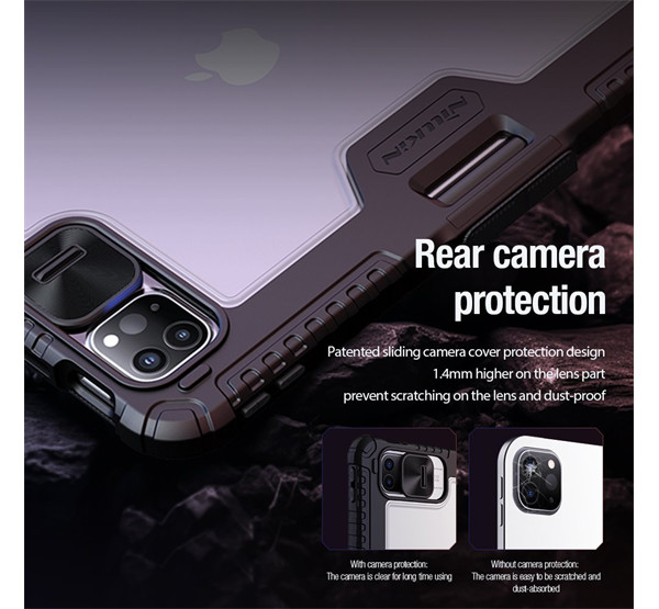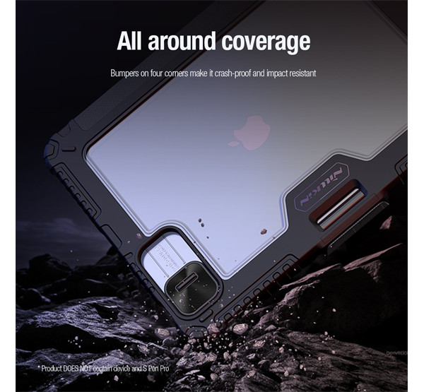 A Nillkin Bumper Pro praktikus, állványként is használható, praktikusan megfordítható védőtok válogatott TPU és PC anyagból készült. A kamera objektívjét csúszófedél védi.