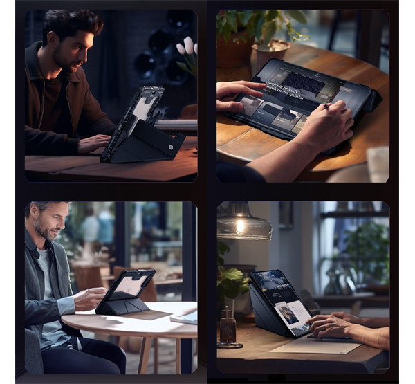 Az egyedi összecsukható fedél minden kiválasztott szögben megjeleníti a táblagépet az íráshoz, olvasáshoz és a webböngészéshez.