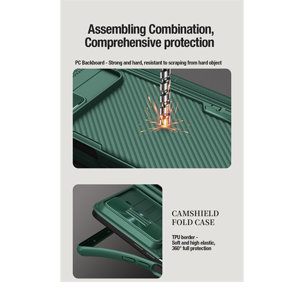 A Nillkin CamShield FOLD Stand egy egyedülálló védőburkolat, amely egy csúszó kamera objektívfedéllel és egy felhajtható állvánnyal rendelkezik. Ráadásul abban is egyedülálló, hogy két anyagból áll.