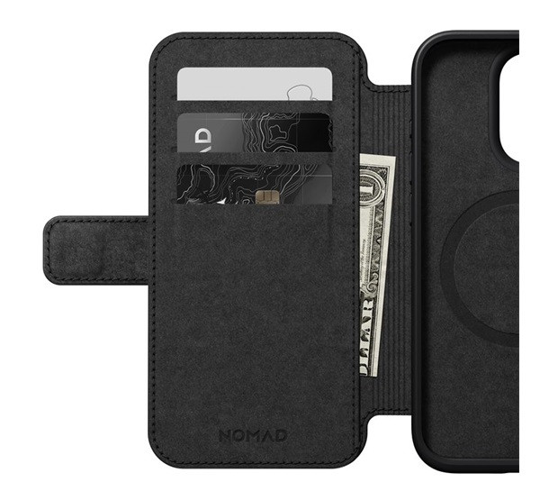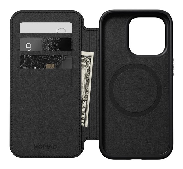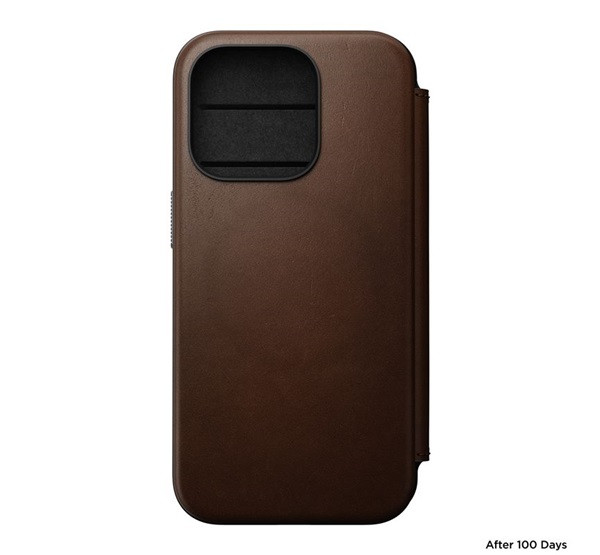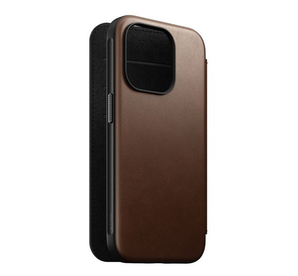 Nomad Modern Leather Folio iPhone 15 Pro flip tok, barna