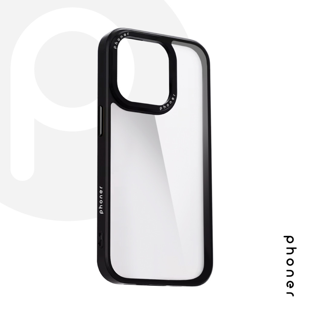 Phoner Custom Hybrid Apple iPhone 14 Pro hátlap tok, fekete (fekete gombokkal)